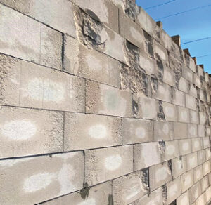 Фото 1. Разрушение ячеистобетонных блоков автоклавного твердения на строительной площадке